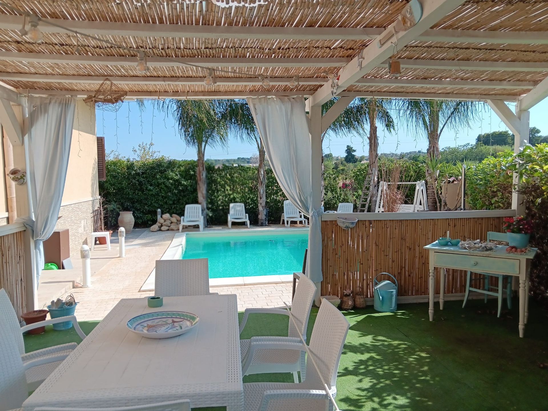 In the heart of Noto, where greenery envelops the villa and silence reigns supreme, stands Villa Sjria: an elegant and private retreat, where the light of Sicilian sunsets transforms every moment into an experience to remember.